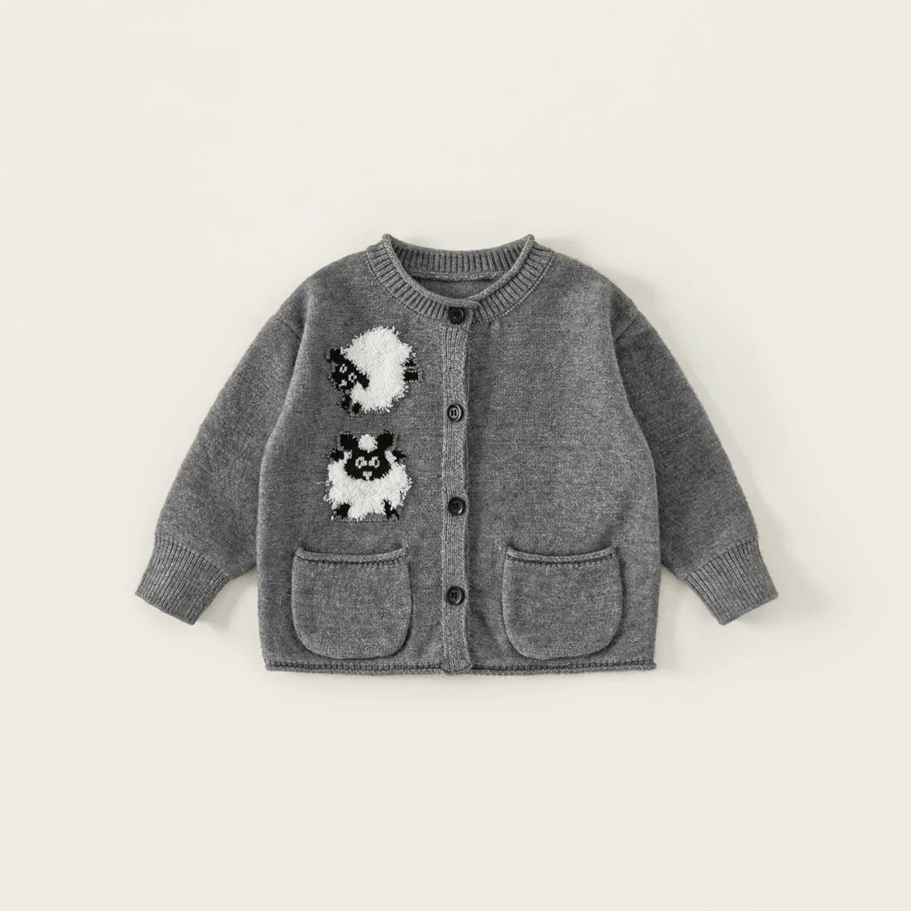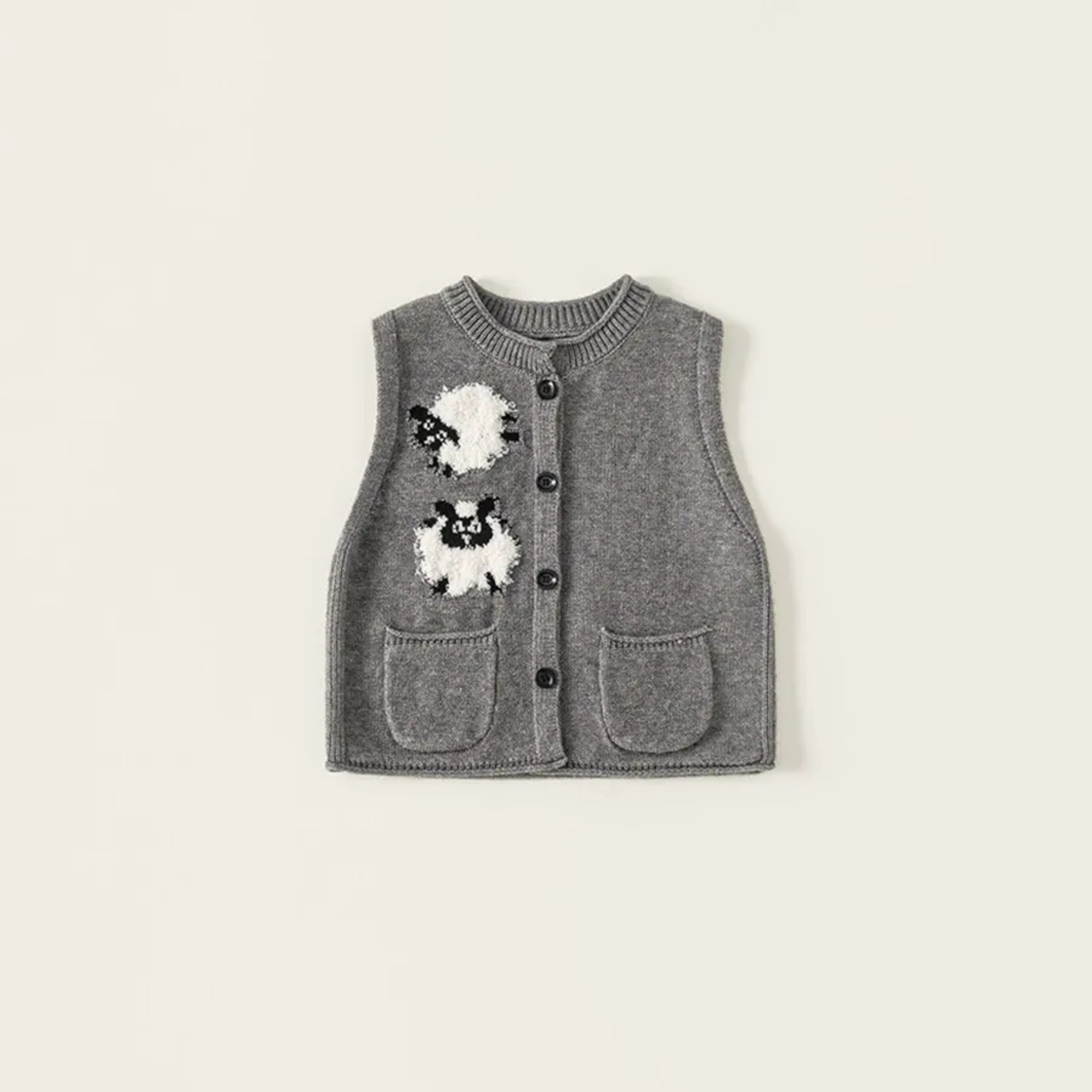 🐏 Grey: モノトーンのヒツジさんがお洒落な、グレーベスト/カーディガン