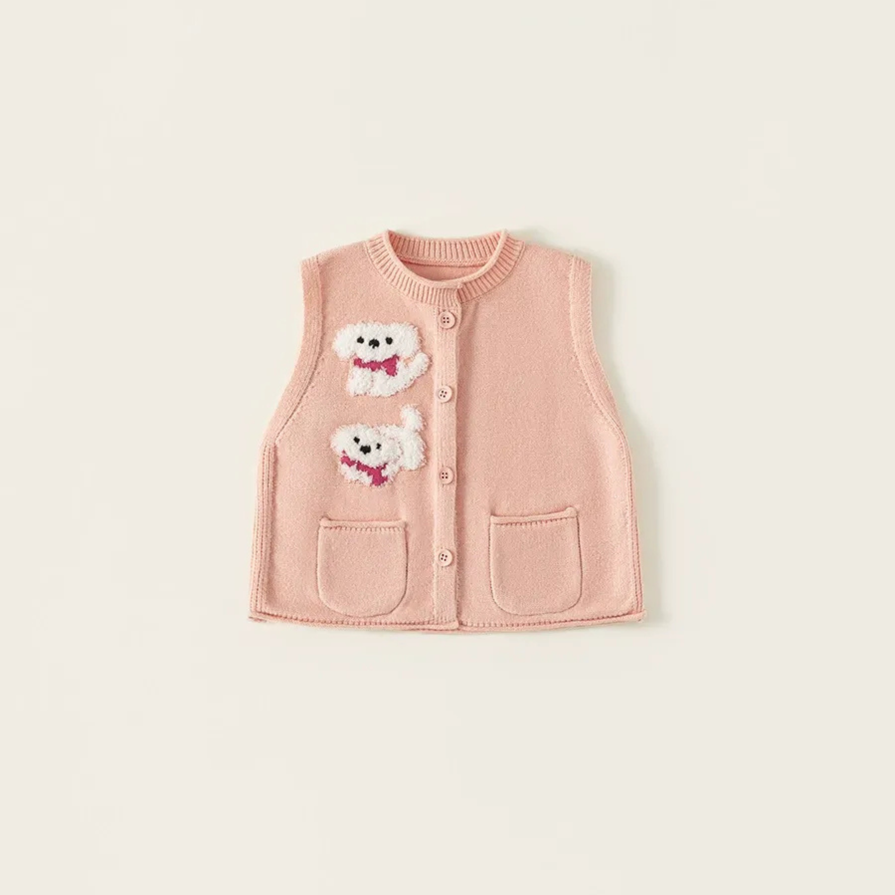 🐩 Pink: 白いワンちゃんがキュートな、優しいピンクベスト